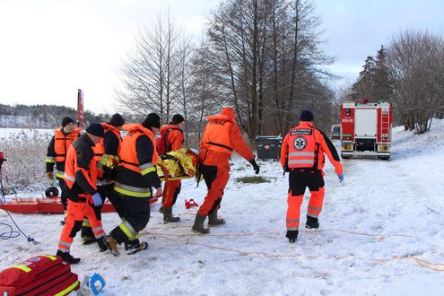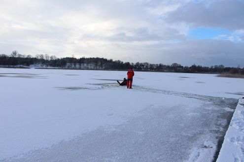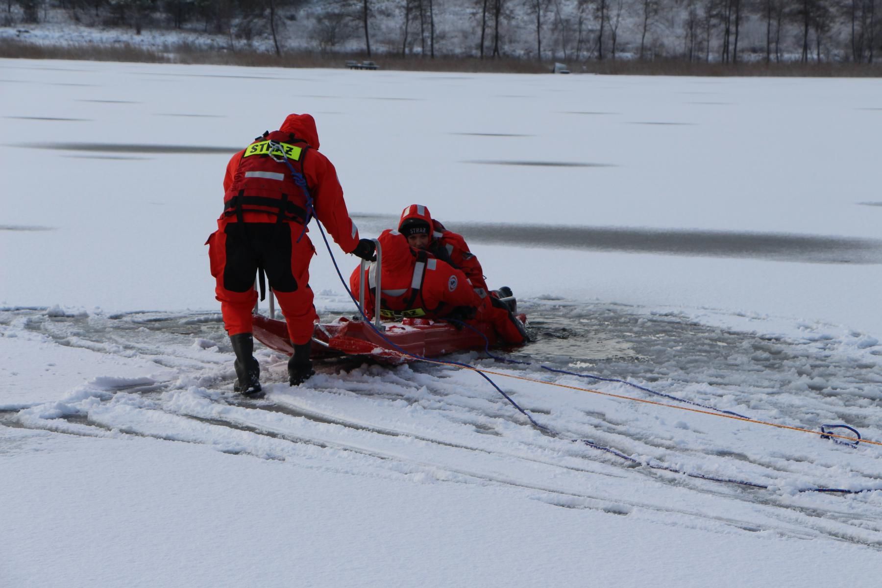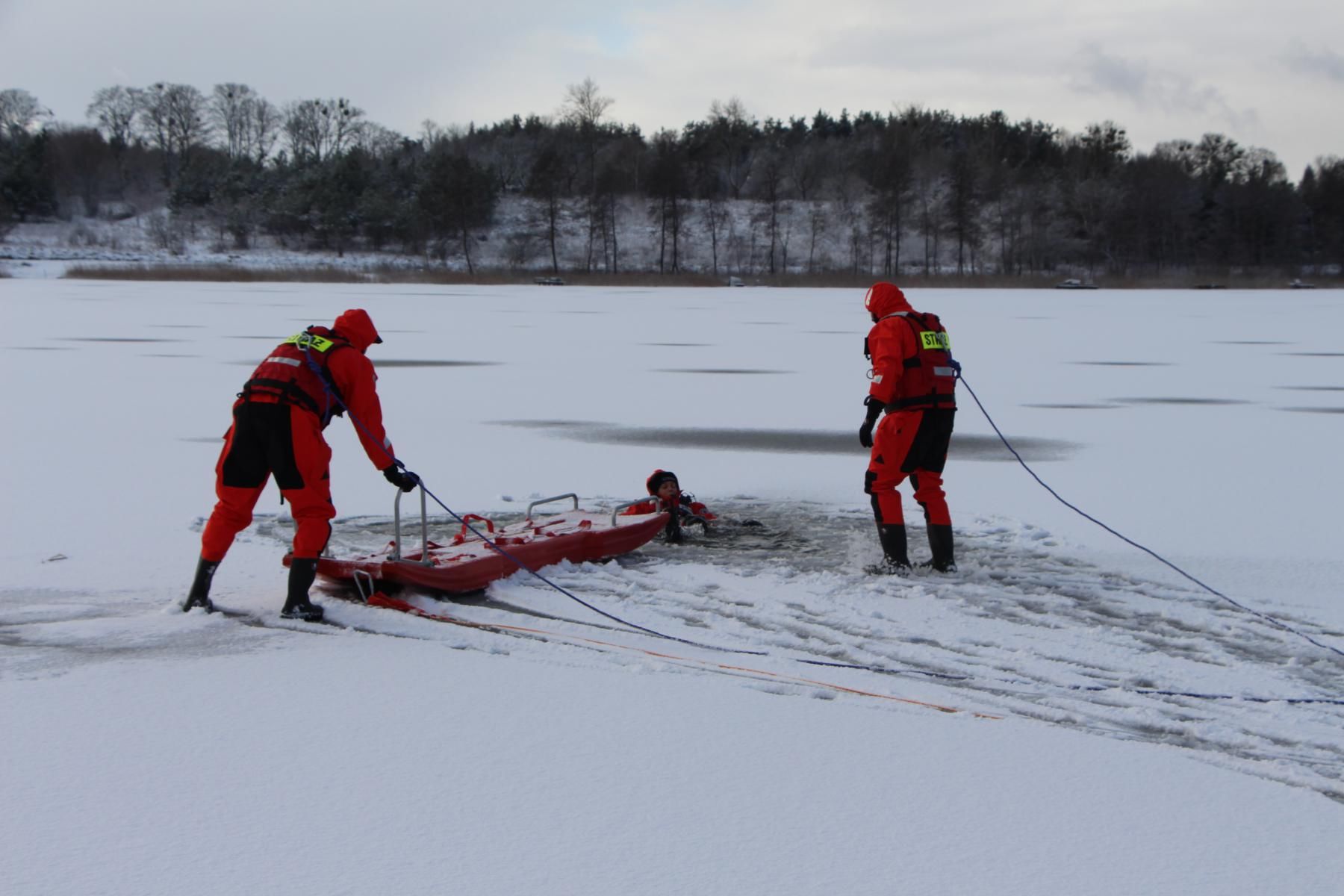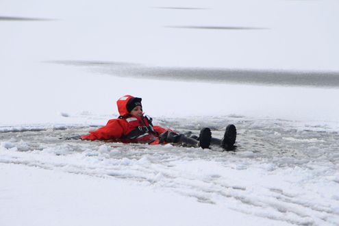 Należy pamiętać, że w przypadku zagrożenia starajmy się zachować spokój i próbujmy wezwać pomoc. Dzwoniąc pod nr 112 przedstawmy się, powiedzmy spokojnie, co się stało, podajmy miejsce, w którym jesteśmy. Czekajmy na przybycie pomocy, nie rozłączajmy się, zostańmy w stałym kontakcie telefonicznym z numerem alarmowym. Gdy zarwie się pod nami lód oszczędzajmy siły na wydostanie się z wody. Wyjście bez niczyjej pomocy o własnych siłach jest niezwykle trudne – ręce ślizgają się po mokrym lodzie – nie można znaleźć chwytu. Najlepiej położyć się płasko na wodzie, rozłożyć szeroko ręce i starać się wpełznąć na lód. Starajmy się poruszać w kierunku brzegu leżąc cały czas na lodzie.