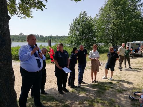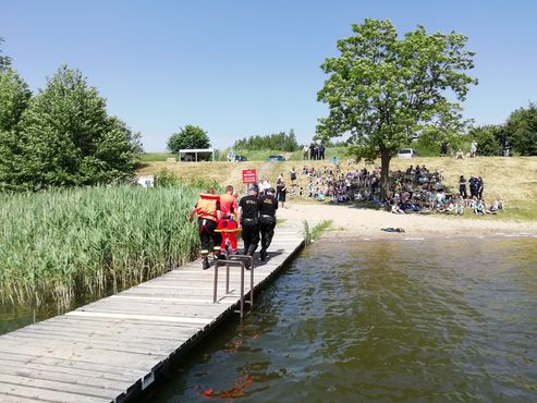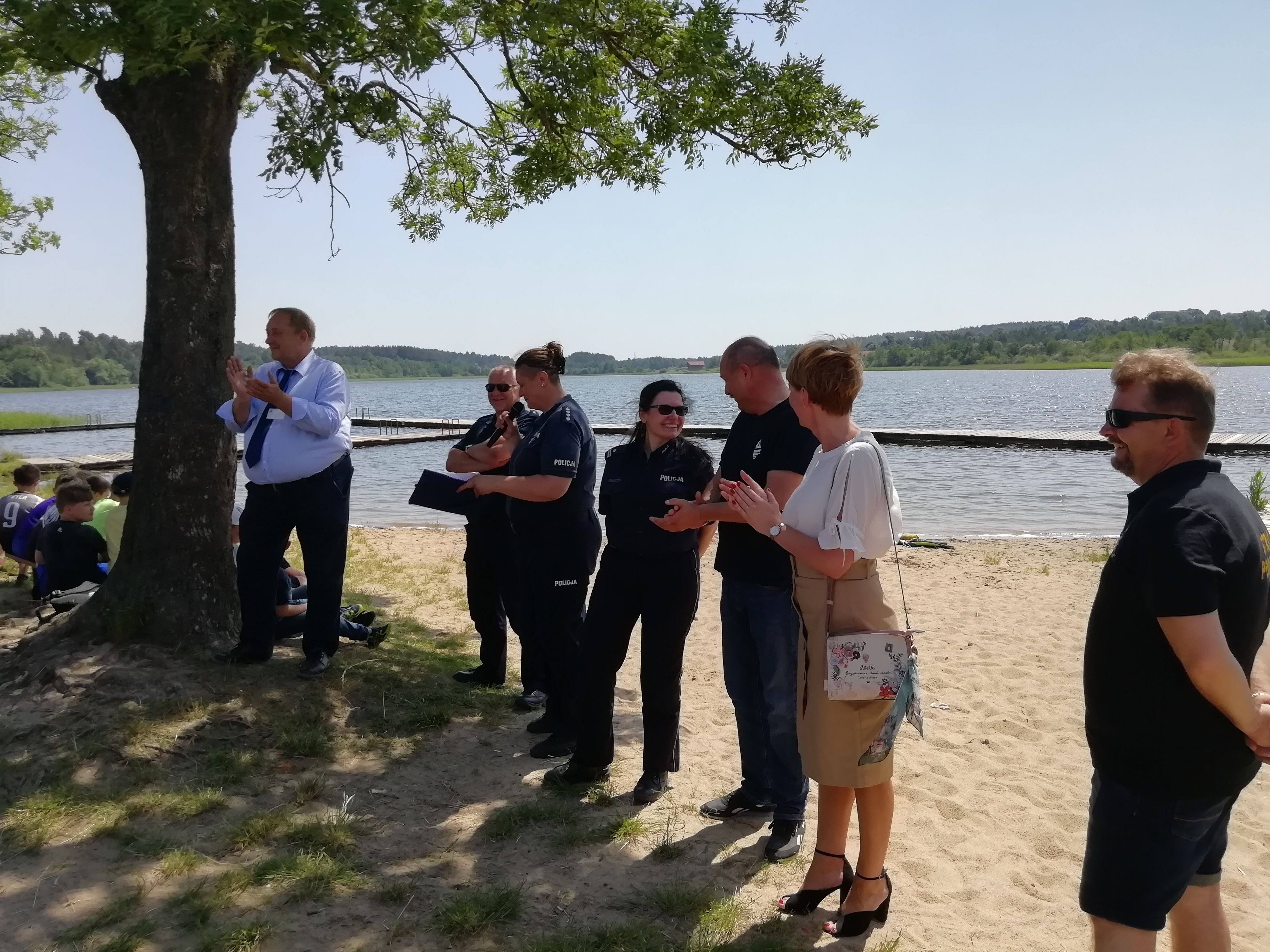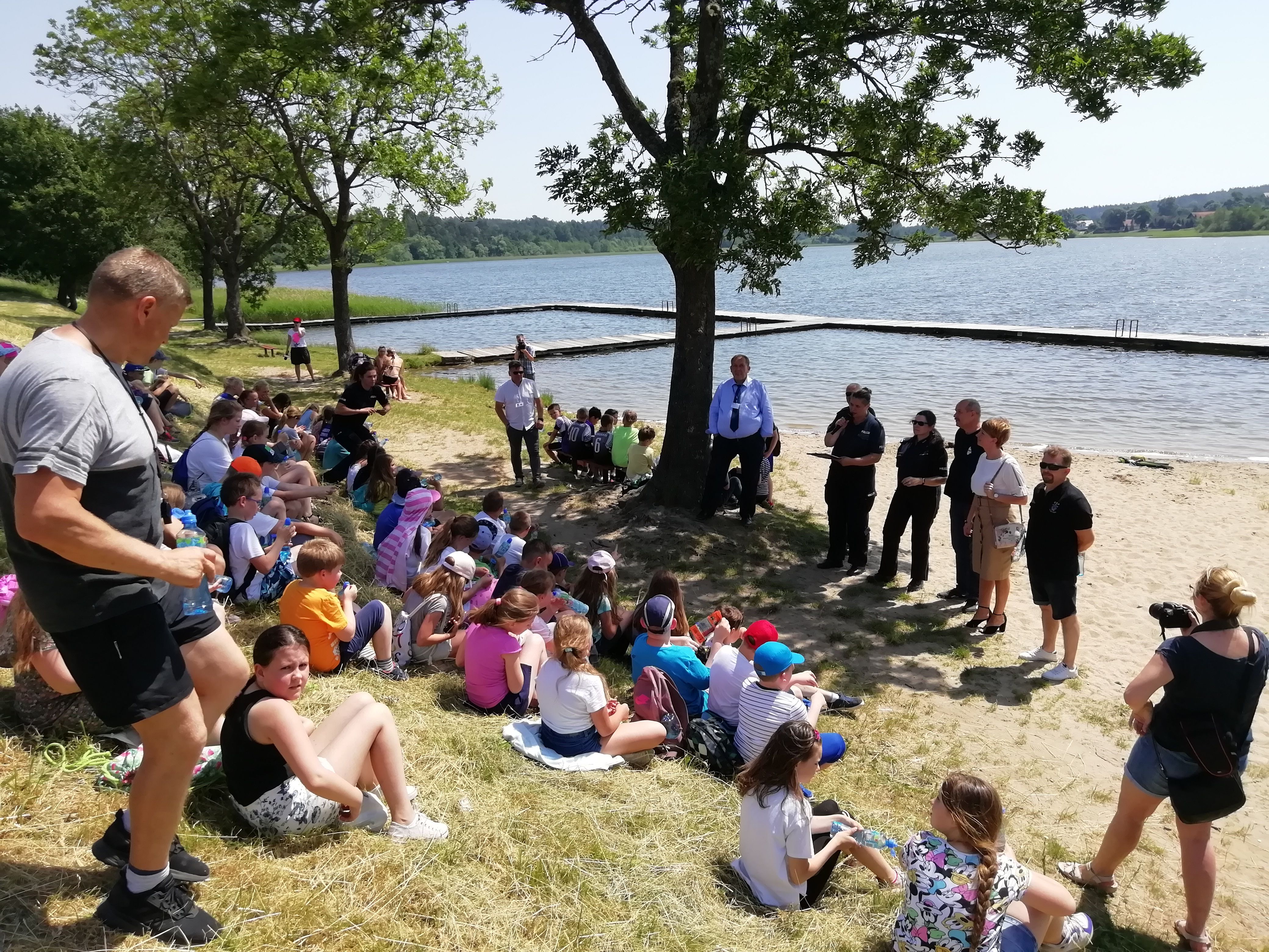 Imprezę rozpoczął Burmistrz Olsztynka Mirosław Stegienko krótko opowiadając jak ważne jest zachowanie bezpieczeństwa na wodzie i w okolicach zbiorników wodnych a edukowanie dzieci powinno odbywać się właśnie poprzez takie spotkania dostarczające praktycznej wiedzy.