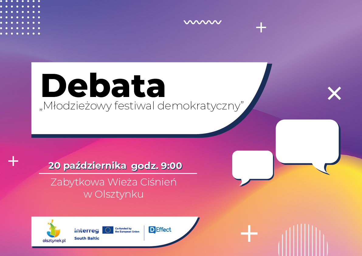Już 20 października o godz. 9:00 w Zabytkowej Wieży Ciśnień w Olsztynku odbędzie się debata „ Młodzieżowy destiwal demokratyczny” – wydarzenie poświęcone aktywnemu uczestnictwu w życiu społecznym i demokratycznym.