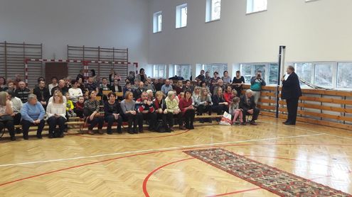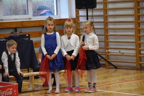 Punktualnie o 12.00 wszystkie przedszkolaki wkroczyły do pięknie przystrojonej i wypełnionej po brzegi sali, na której czekali przejęci dziadkowie. Zebranych gości przywitał Dyrektor Zespołu Szkolno – Przedszkolnego w Waplewie Piotr Kolek, który złożył życzenia wszystkim babciom i dziadkom z okazji ich święta. Następnie głos zabrał Burmistrz Olsztynka Mirosław Stegienko.