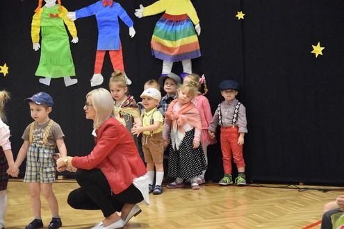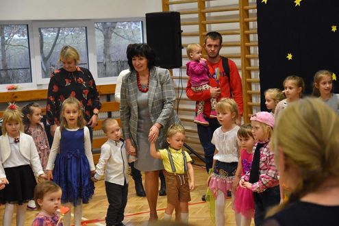 Po części artystycznej Burmistrz Olsztynka Mirosław Stegienko, Dyrektor Piotr Kolek wspólnie z babciami, dziadkami, rodzicami i przedszkolakami zatańczyli „Kawiarenki” Ireny Jarockiej.