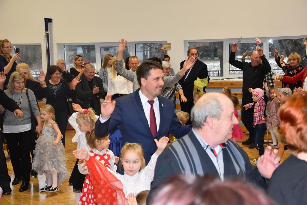 Po części artystycznej Burmistrz Olsztynka Mirosław Stegienko, Dyrektor Piotr Kolek wspólnie z babciami, dziadkami, rodzicami i przedszkolakami zatańczyli „Kawiarenki” Ireny Jarockiej.