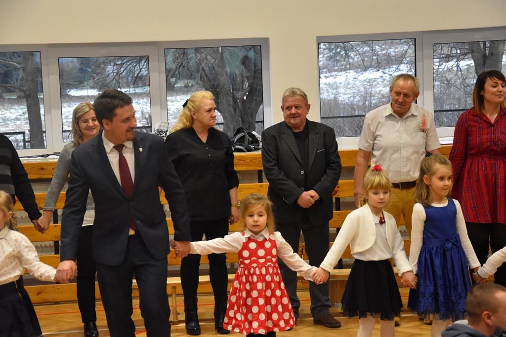 Punktualnie o 12.00 wszystkie przedszkolaki wkroczyły do pięknie przystrojonej i wypełnionej po brzegi sali, na której czekali przejęci dziadkowie. Zebranych gości przywitał Dyrektor Zespołu Szkolno – Przedszkolnego w Waplewie Piotr Kolek, który złożył życzenia wszystkim babciom i dziadkom z okazji ich święta. Następnie głos zabrał Burmistrz Olsztynka Mirosław Stegienko.