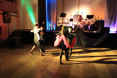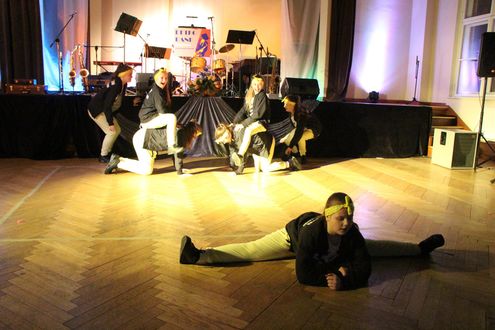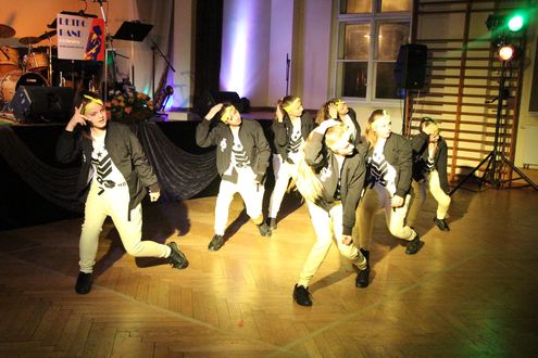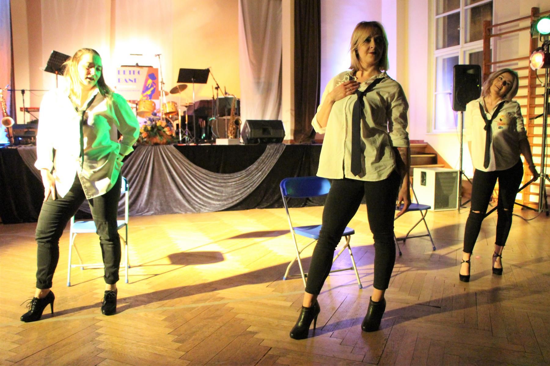 W przerwie widzowie mogli podziwiać pokaz par i zespołów tanecznych w programie tańców towarzyskich i układach tańca nowoczesnego z MDK w Olsztynku.
