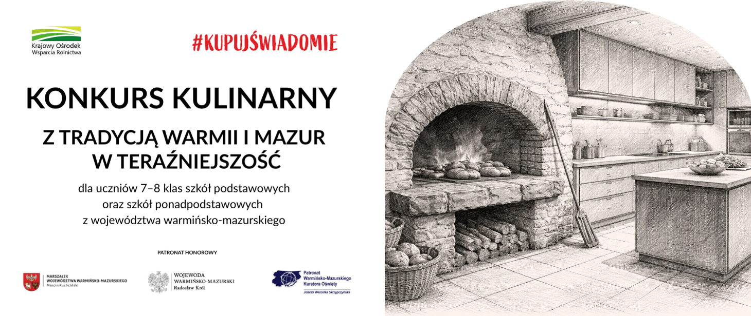 Krajowy Ośrodek Wsparcia Rolnictwa Oddział Terenowy w Olsztynie zaprasza uczniów klas 7–8 szkół podstawowych oraz uczniów szkół ponadpodstawowych do udziału w I edycji Konkursu Kulinarnego „Z tradycją Warmii i Mazur w teraźniejszość”.
