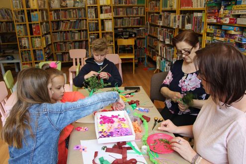 W Bibliotece Miejskiej przez cały dzień trwały warsztaty świąteczne. W przeddzień Niedzieli Palmowej, najmłodsi uczestnicy Jarmarku mogli samodzielnie wykonać piękną palmę wielkanocną.