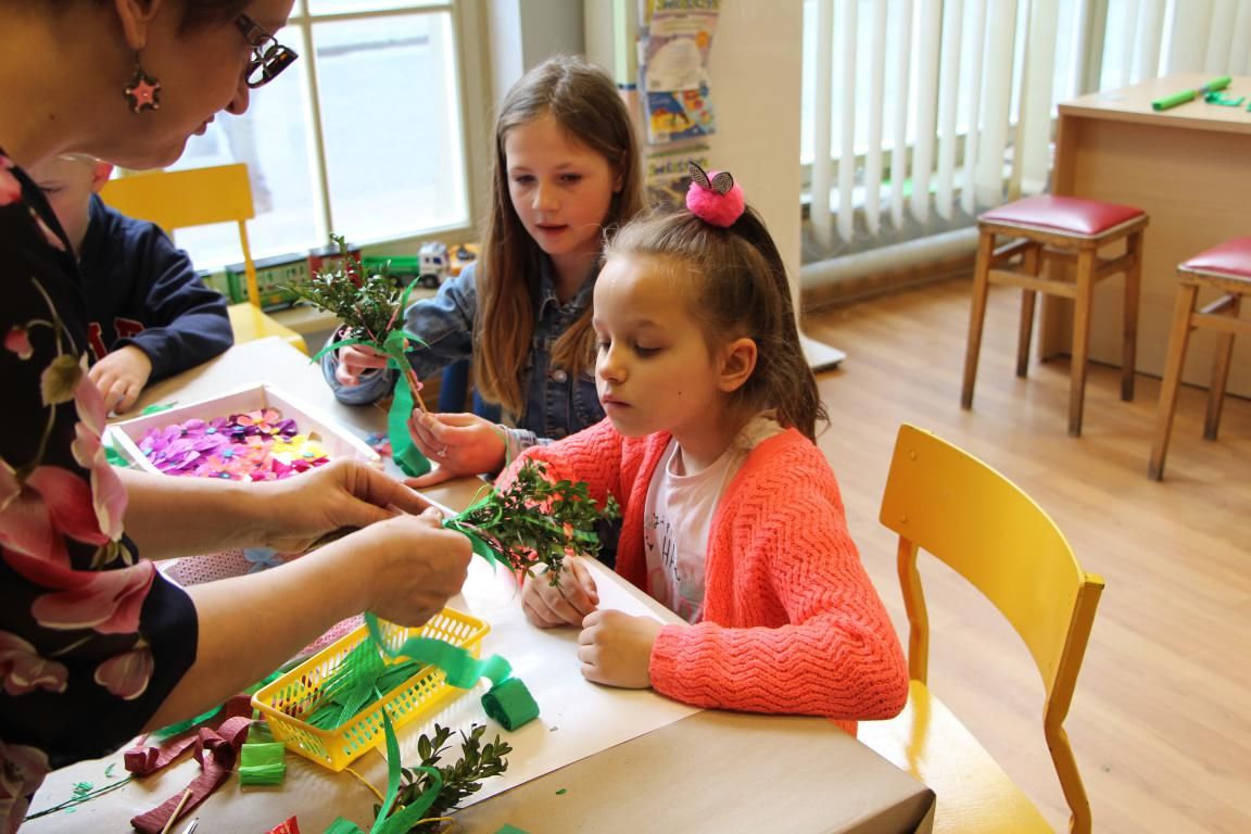 W Bibliotece Miejskiej przez cały dzień trwały warsztaty świąteczne. W przeddzień Niedzieli Palmowej, najmłodsi uczestnicy Jarmarku mogli samodzielnie wykonać piękną palmę wielkanocną.