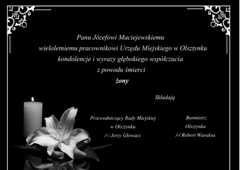 Kondolencje Burmistrza Olsztynka oraz Przewodniczącego Rady Miejskiej