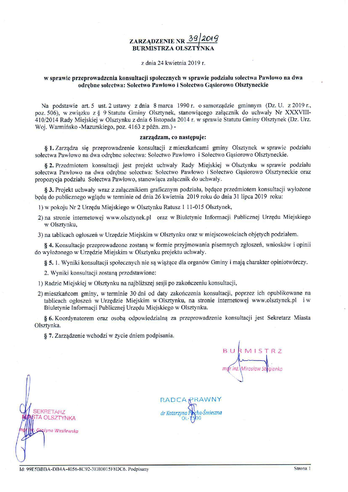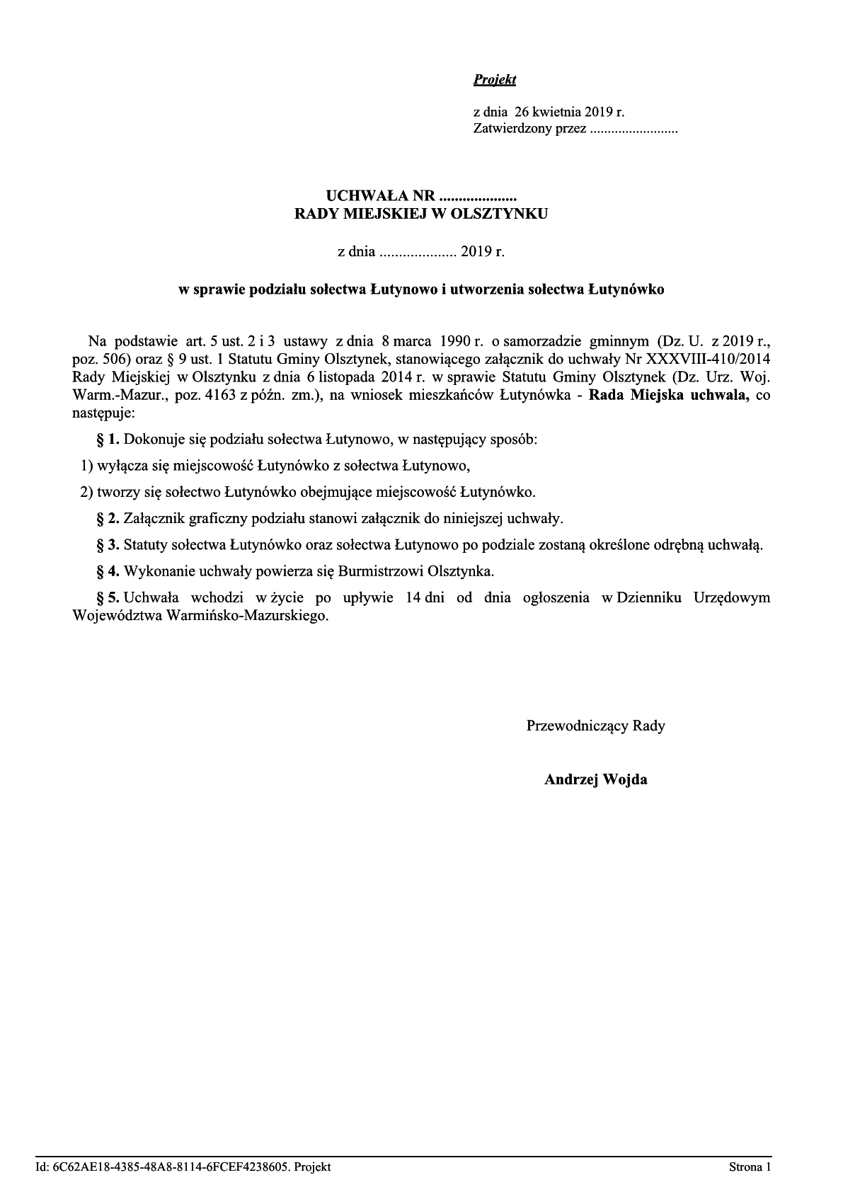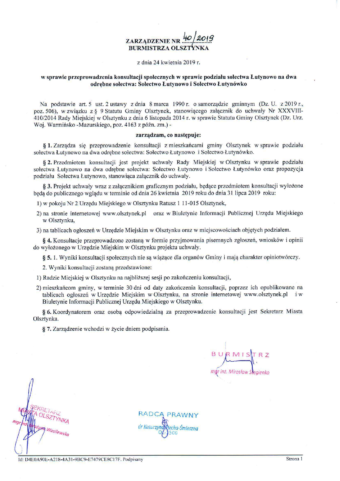 Konsultacje społeczne w sprawie podziału sołectw Pawłowo i Łutynowo