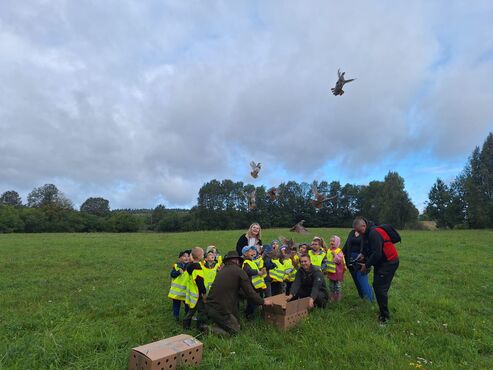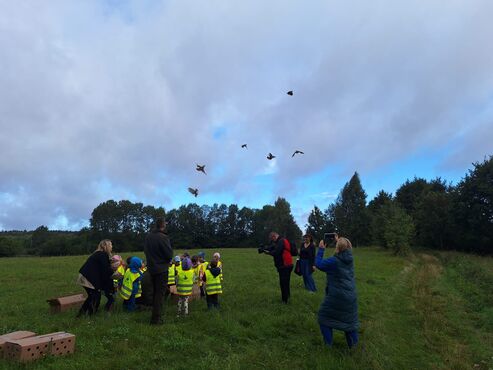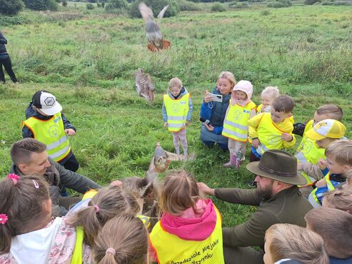 Najmłodsi uczestnicy z ogromnym zaangażowaniem otwierali specjalne klatki, z których ptaki wzbijały się w powietrze, powracając na swoje naturalne tereny. Dla wielu dzieci było to pierwsze tak bliskie spotkanie z dziką przyrodą – nie brakowało emocji, radości i zachwytu nad pięknem natury.