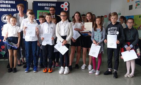 Dyplomy oraz cenne nagrody książkowe wręczyli zwycięzcom: Zastępca Burmistrza Olsztynka Anna Luśnia oraz Dyrektor Zespołu Szkolno - Przedszkolnego w Waplewie Piotr Kolek. Wszyscy uczestnicy konkursów otrzymali pamiątkowe dyplomy i długopisy.