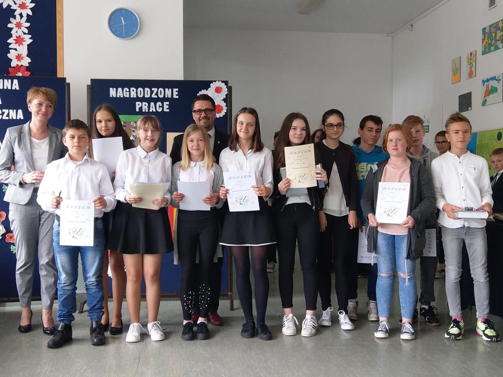 Dyplomy oraz cenne nagrody książkowe wręczyli zwycięzcom: Zastępca Burmistrza Olsztynka Anna Luśnia oraz Dyrektor Zespołu Szkolno - Przedszkolnego w Waplewie Piotr Kolek. Wszyscy uczestnicy konkursów otrzymali pamiątkowe dyplomy i długopisy.