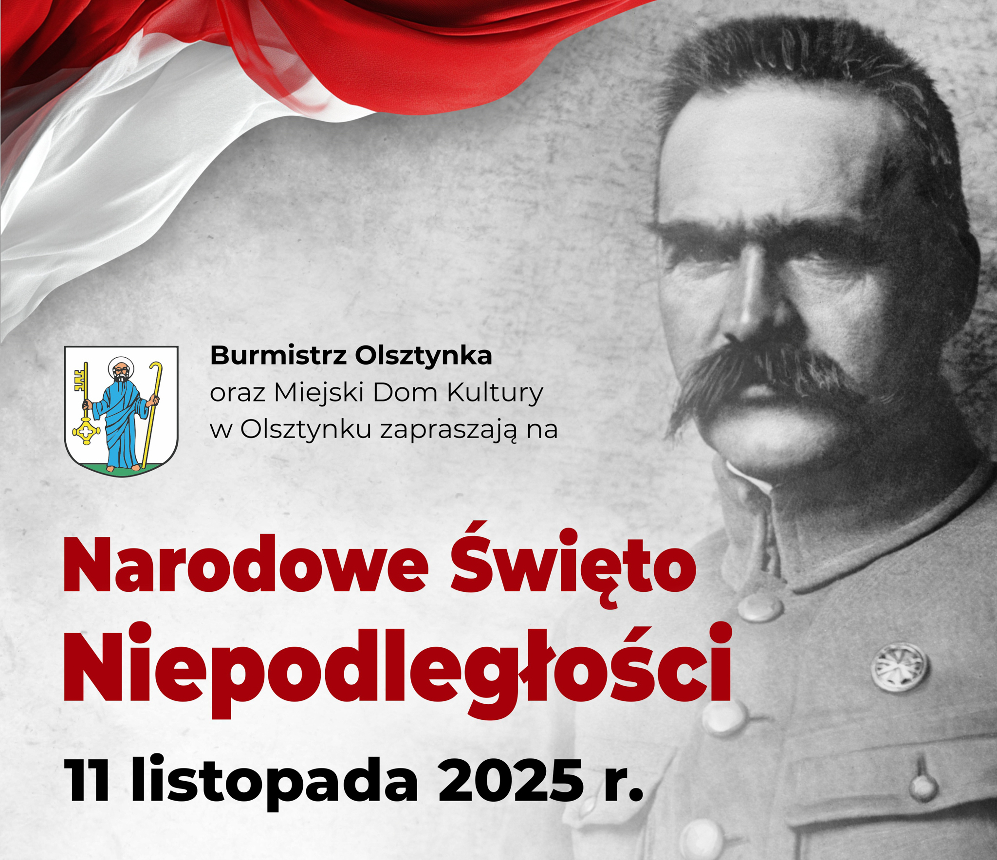 Burmistrz Olsztynka oraz Miejski Dom Kultury w Olsztynku serdecznie zapraszają mieszkańców do wspólnego świętowania Narodowego Święta Niepodległości, które odbędzie się 11 listopada 2025 roku.