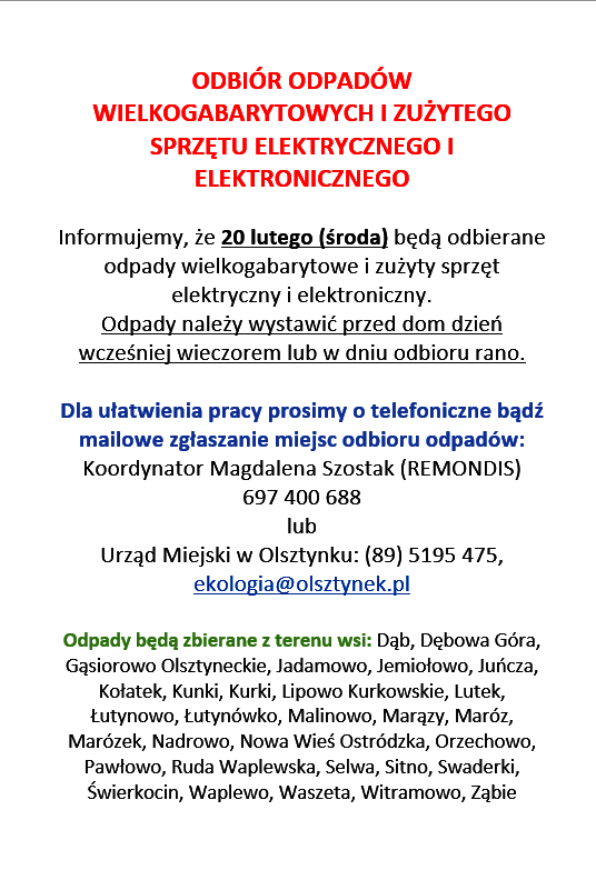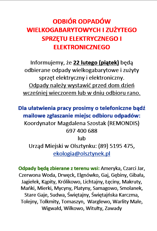 ODBIÓR ODPADÓW WIELKOGABARYTOWYCH I ZUŻYTEGO SPRZĘTU ELEKTRYCZNEGO I ELEKTRONICZNEGO