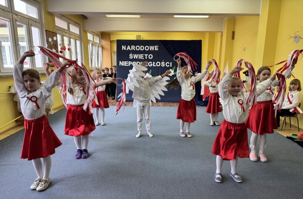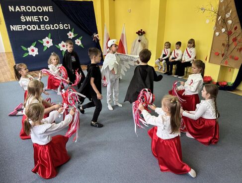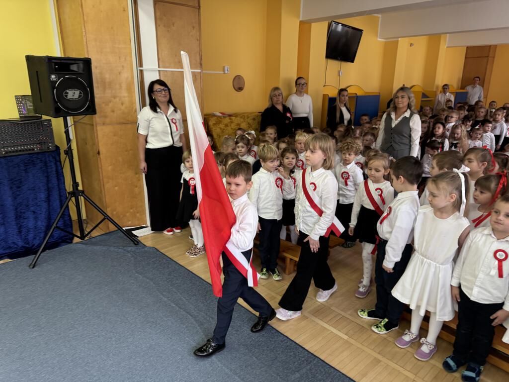 Dnia 7 listopada 2025r. w naszym przedszkolu odbyła się uroczystość z okazji Narodowego Święta Niepodległości. Akademię rozpoczęliśmy wprowadzeniem pocztu flagowego i odśpiewaniem hymnu narodowego w ramach ogólnopolskiej akcji „Szkoła do hymnu”. Następnie Dyrektor Przedszkola Miejskiego w Olsztynku – Pani Barbara Sternicka powitała wszystkich obecnych. Program artystyczny pt. „Akademia dla Niepodległej” przedstawiły dzieci z grup III, V, VII, IX. Mali patrioci zaprezentowali wiersze, piosenki i tańce o tematyce patriotycznej. Piękny występ dzieci został nagrodzony gromkimi brawami. Zwieńczeniem tego dnia była niespodzianka przygotowana dla dzieci przez rodziców, patriotyczne słodkości: torty, ciasta i ciasteczka.