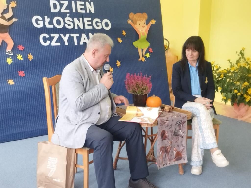 Przedszkolakom w tym dniu czytał Pan Jerzy Głowacz, Przewodniczący Rady Miejskiej w Olsztynku. Pan Jerzy Głowacz opowiedział również o swoim zawodzie leśniczego, o lesie i mieszkających w nim zwierzętach. Następnie odczytał dzieciom bajkę pt. „Wielbłąd, który marudził” autorstwa Rachel Bright niosącej morał o tym, że warto otwierać się na innych, a wsparcie przyjaciół i pozytywne nastawienie potrafią odmienić najtrudniejsze chwile.