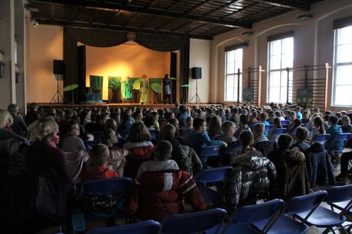 Młodzi widzowie aktywnie uczestniczyli też w rozgrywającej się na scenie w ciekawy sposób zaprezentowanej historii. Zapraszani przez aktorów, chętnie angażowali się w ekologiczne konkursy, gry i zabawy.
