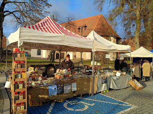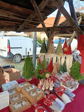 Istotnym elementem wydarzenia był kiermasz, na którym lokalni wystawcy oferowali rękodzieło, ozdoby bożonarodzeniowe, wyroby artystyczne oraz regionalne produkty spożywcze. Koła Gospodyń Wiejskich serwowały tradycyjne potrawy, a wśród stoisk dostępne były także choinki, cieszące się dużym zainteresowaniem odwiedzających.