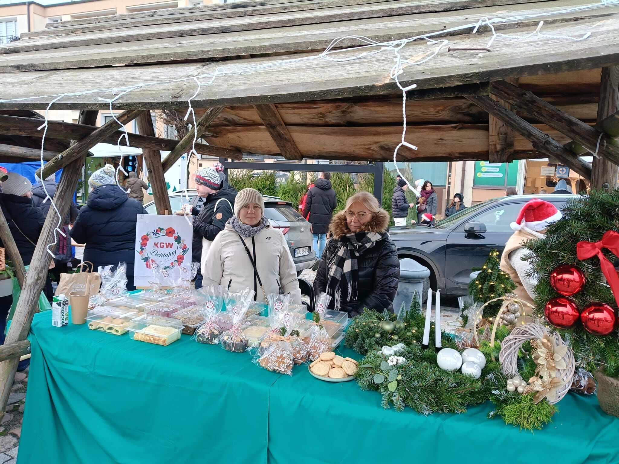 Istotnym elementem wydarzenia był kiermasz, na którym lokalni wystawcy oferowali rękodzieło, ozdoby bożonarodzeniowe, wyroby artystyczne oraz regionalne produkty spożywcze. Koła Gospodyń Wiejskich serwowały tradycyjne potrawy, a wśród stoisk dostępne były także choinki, cieszące się dużym zainteresowaniem odwiedzających.