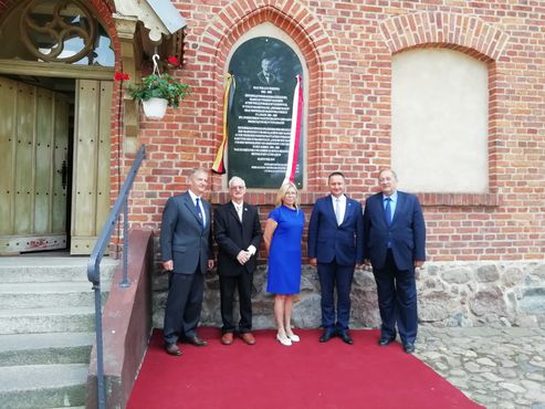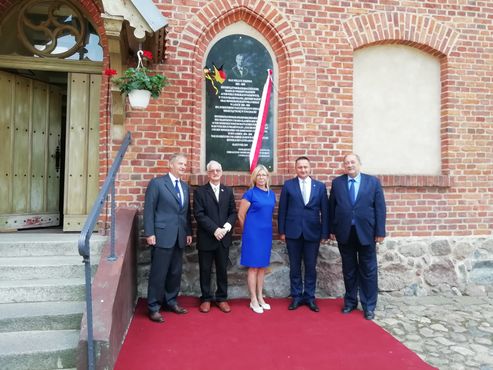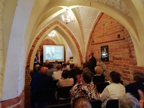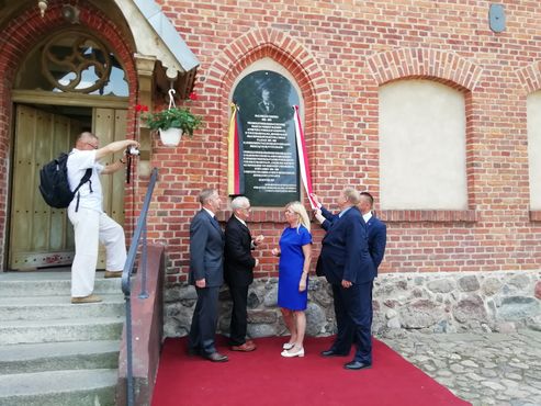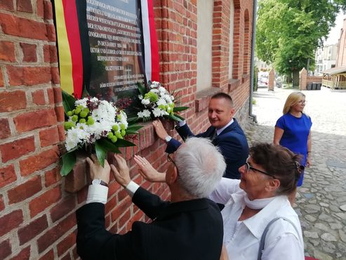 4. Uroczyste odsłonięcie tablicy pamiątkowej Maxa Poulluxa Toeppena na murach olsztyneckiego zamku – spotkanie na dziedzińcu zamku.
