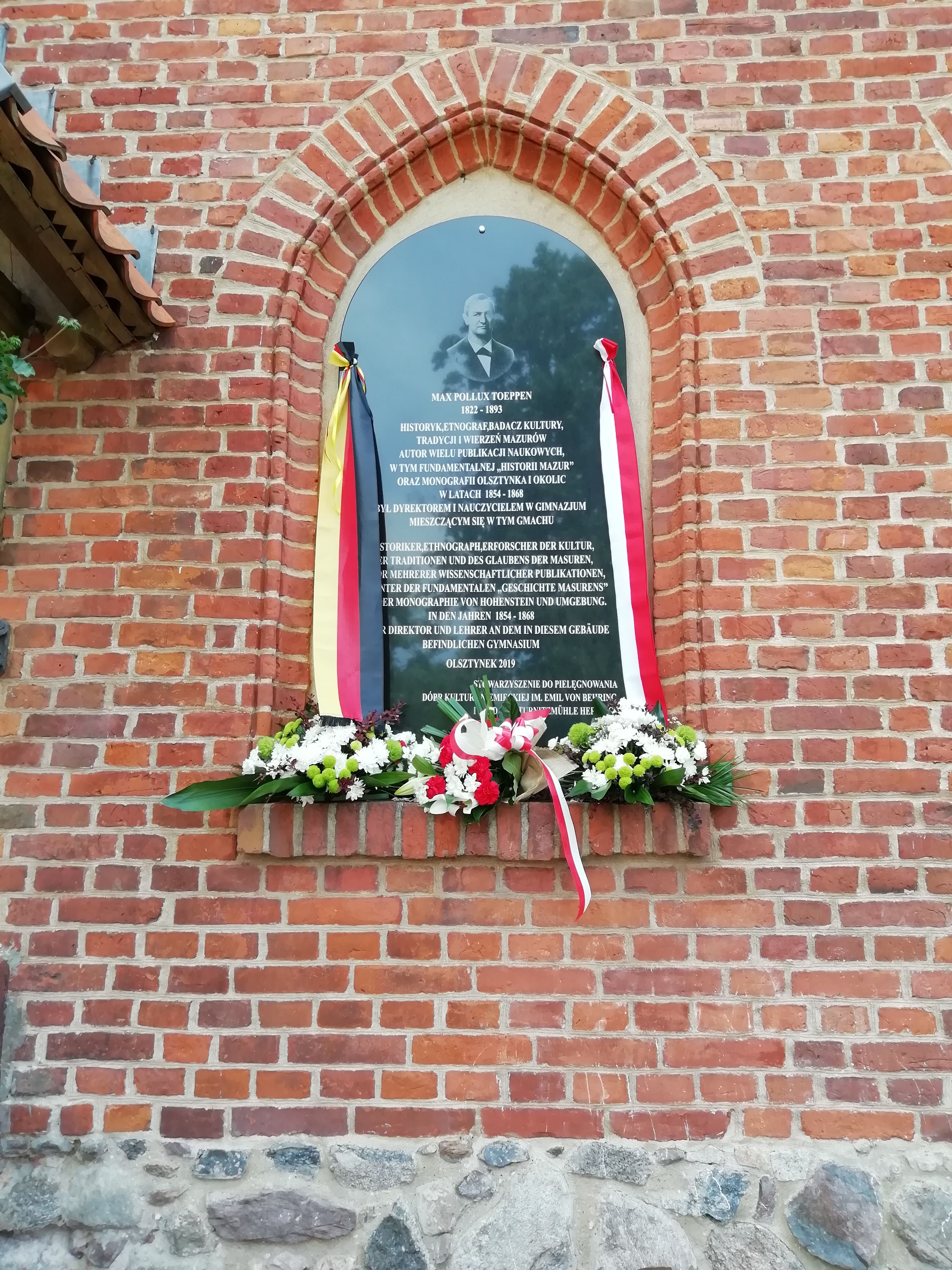 Na murach olsztyneckiego zamku i siedzibie Zespołu Szkół w Olsztynku 10 czerwca 2019 r. została odsłonięta tablica pamiątkowa Maxa Polluxa Toeppena. Inicjatorem upamiętnienia niemieckiego historyka, filozofa, nauczyciela i etnografa było Stowarzyszenie do Pielęgnowania Dóbr Kultury Niemieckiej im. Emila von Behringa. Starosta olsztyński objął wydarzenie honorowym patronatem.