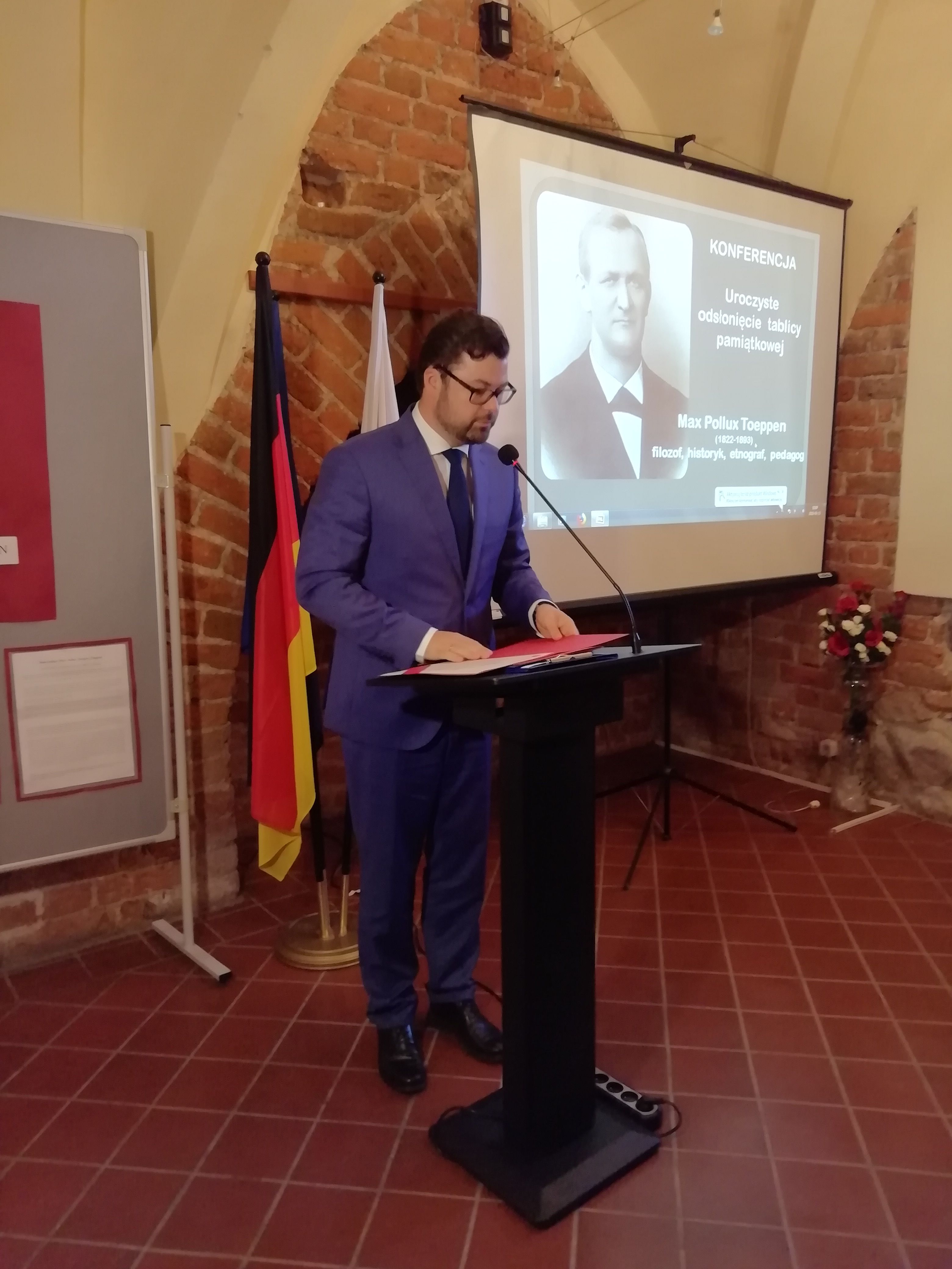 3. Życie, twórczość i dorobek Maxa Poulluxa Toeppena - wystąpienie Bogumiła Kuźniewskigo, nauczyciela, historyka, inicjatora wielu ważnych dla Olsztynka i regionu projektów.