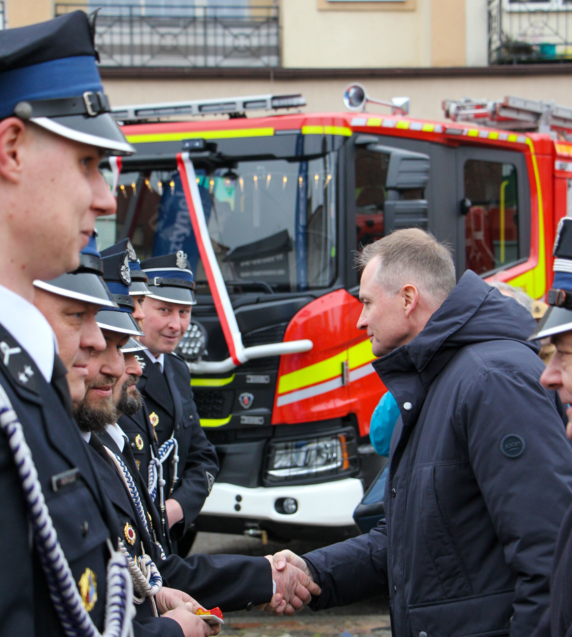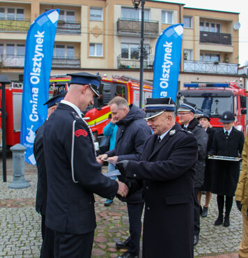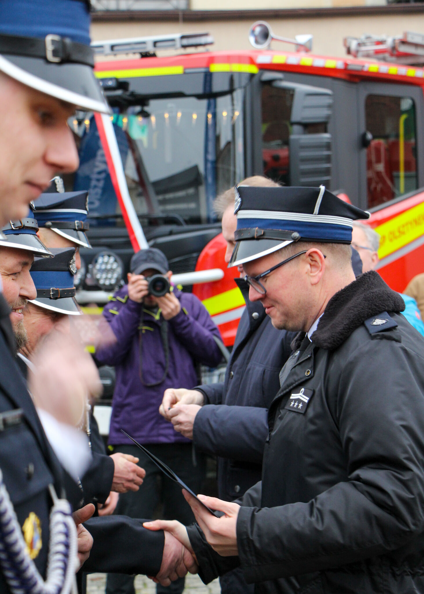 6 grudnia na Placu św. Piotra w Olsztynku odbyła się uroczystość, podczas której jednostki Ochotniczych Straży Pożarnych z terenu gminy otrzymały nowe oraz relokowane pojazdy ratowniczo-gaśnicze. Wydarzenie zgromadziło licznie strażaków, mieszkańców oraz przedstawicieli samorządu, a także wielu zaproszonych gości, wśród których znaleźli się m.in. Burmistrz Olsztynka Robert Waraksa, Marszałek Województwa Warmińsko-Mazurskiego Marcin Kuchciński, Senator RP Ewa Kaliszuk, Starosta Powiatu Olsztyńskiego Andrzej Abako, Wicestarosta Powiatu Olsztyńskiego Artur Wrochna oraz Komendant Koendy Miejskiej PSP w Olsztynie bryg. Łukasz Jasiński. Obecność tak szerokiego grona przedstawicieli władz podkreśliła znaczenie współpracy i ciągłego wzmacniania bezpieczeństwa lokalnej społeczności.