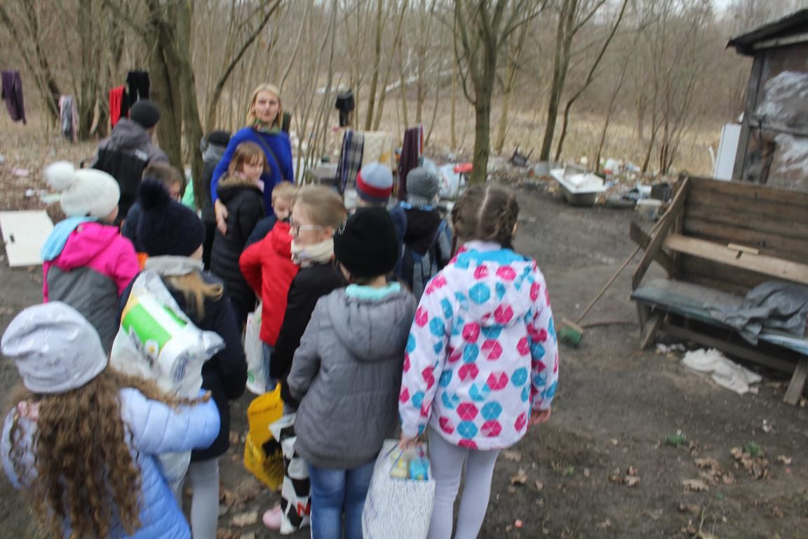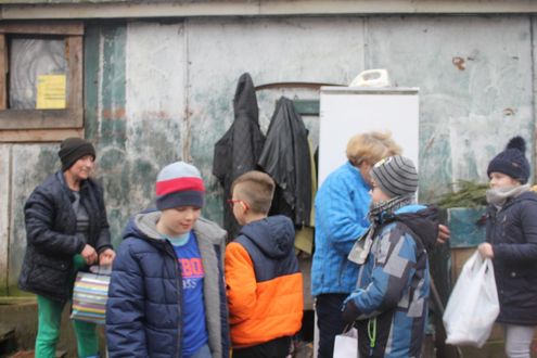 Potem pojechaliśmy na spotkanie z wyjątkowymi kobietami - paniami: Leokadią, Iwoną i Izabelą. Są one bezdomne i znajdują się pod opieką olsztyńskiej Fundacji Pomoc Patrioty. To serdeczne i ciepłe kobiety. Ich życie nie jest łatwe, jeśli chodzi o warunki bytowe, ale tak samo wartościowe jak nasze. Dlatego też postanowiliśmy im pomóc. Dzieci wspólnie z rodzicami przygotowały paczki, w których znalazły się słodycze, artykuły spożywcze i przemysłowe oraz środki czystości. Panie były bardzo wzruszone, uściskom nie było końca. Mimo zimna serca wszystkich były bardzo gorące. I takie niech pozostaną.