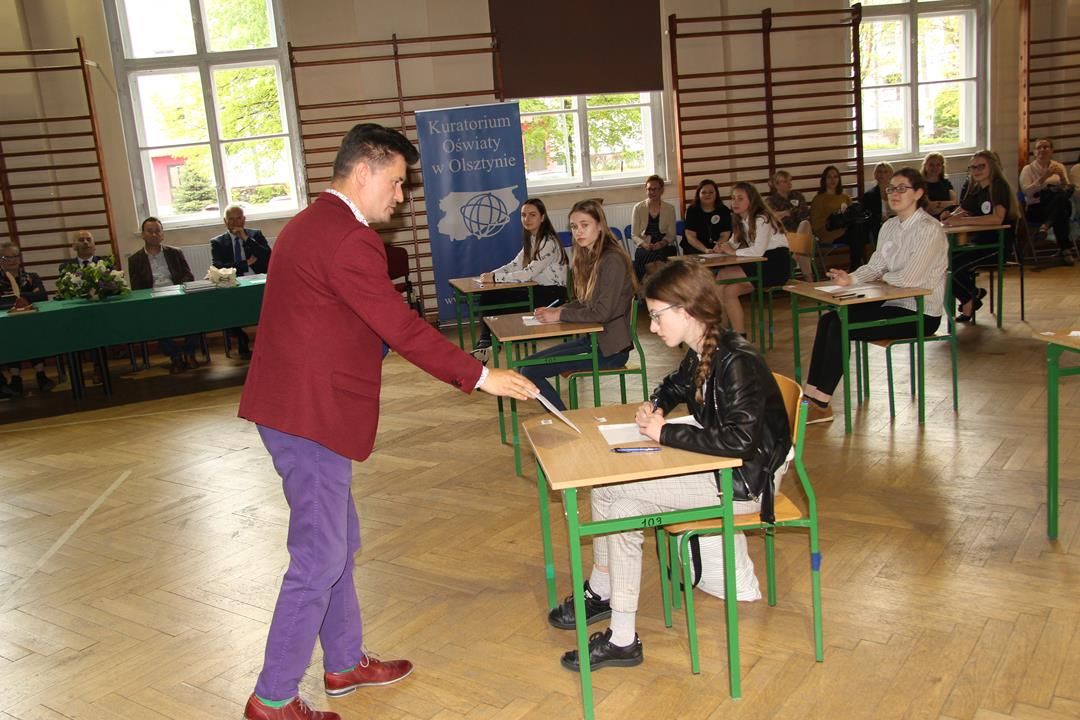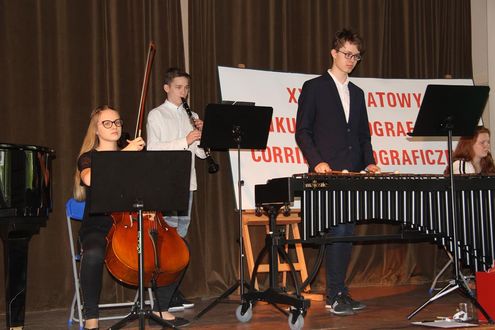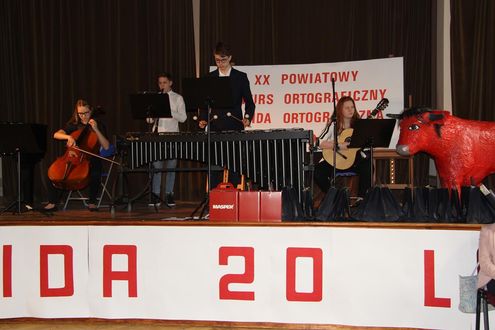Aby wprowadzić uczestników w odpowiedni nastrój, szkolny zespół kameralny zagrał utwór Carlosa Gardeli pt. „Por una cabeza” (tango). Następnie pani dyrektor Irena Jędruszewska powitała wszystkich przybyłych na tę uroczystość gości, nauczycieli i opiekunów oraz uczestników konkursu. Wśród zaproszonych gości byli: p. Anna Luśnia – Zastępca Burmistrza w Olsztynku, p. Dariusz Człapiński – Zastępca Dyrektora Wydziału Kształcenia, Wychowania i Opieki, przedstawiciel Kuratora Oświaty w Olsztynie, p. Andrzej Wojda – Przewodniczący Rady Miejskiej w Olsztynku, p. Alicja Woźnicka – Przewodnicząca Komisji Spraw Społecznych w Olsztynku, p. Stefania Domagalska – siostra śp. Marka Domagalskiego, p. Andrzej Błaszczuk – twórca statuetki „Mistrz Kaligrafii”, p. Wojciech Tański – konsultant Warmińsko-Mazurskiego Ośrodka Doskonalenia Nauczycieli w Olsztynie, p. Beata Bukowska – dyrektor Szkoły Podstawowej nr 2 im. Rotmistrza Witolda Pileckiego w Olsztynku.