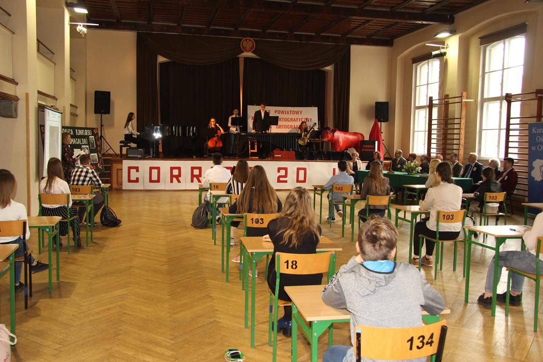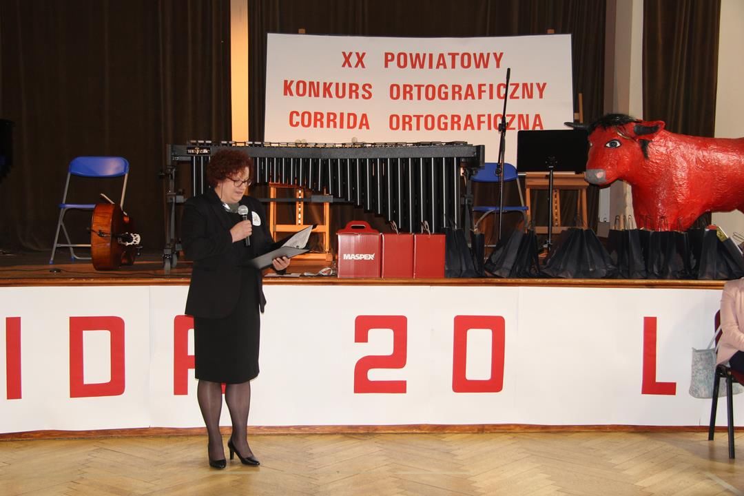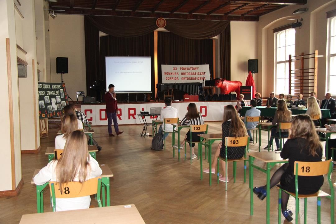Powiatowy Konkurs Ortograficzny po raz pierwszy odbył się w kwietniu 2000 roku. Zorganizowany został przez zespół nauczycieli polonistów oraz nauczycieli biblioteki pod kierunkiem pana Marka Domagalskiego. Jego celem jest przede wszystkim dbałość o piękno języka polskiego, propagowanie idei poprawnej pisowni oraz motywowanie uczniów do doskonalenia własnych umiejętności w zakresie stosowania zasad ortograficznych. Obecnie konkurs ma charakter cykliczny i jest zawsze swoistym świętem ortografii. Jego uczestnikami są uczniowie, którzy przeszli w swoich szkołach eliminacje i w dziedzinie ortografii są najlepsi. Od 20 lat na olsztyneckiej arenie mierzą się torreadorzy ze Stawigudy, Purdy, Biesala, Gietrzwałdu, Jonkowa, Barczewa, Dobrego Miasta, Biskupca, Waplewa, Jezioran, Butryn i Olsztynka. Głównym zadaniem konkursowym jest napisanie tekstu dyktanda zgodnie z zasadami poprawności ortograficznej i interpunkcyjnej. Od samego początku autorami dyktand byli nauczyciele języka polskiego z olsztyneckich szkół. Natomiast od kilku lat arcyciekawe teksty na „Corridę Ortograficzną” tworzy p. Wojciech Tański – konsultant Warmińsko-Mazurskiego Ośrodka Doskonalenia Nauczycieli w Olsztynie, dzięki temu stał się również współorganizatorem tego konkursu.