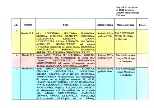 Zarządzenie Burmistrza Olsztynka w sprawie wyborów przewodniczących osiedla oraz zarządu osiedla na terenie miasta Olsztynka