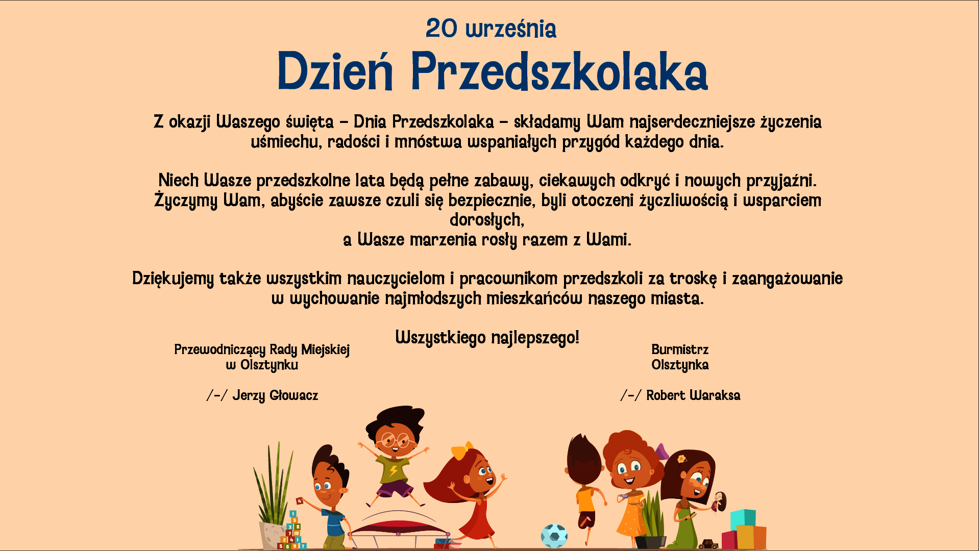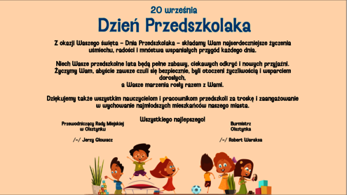 Życzenia Przewodniczcego Rady Miejskiej oraz Burmistrza Olsztynka z okazji Dnia Przedszkolaka.