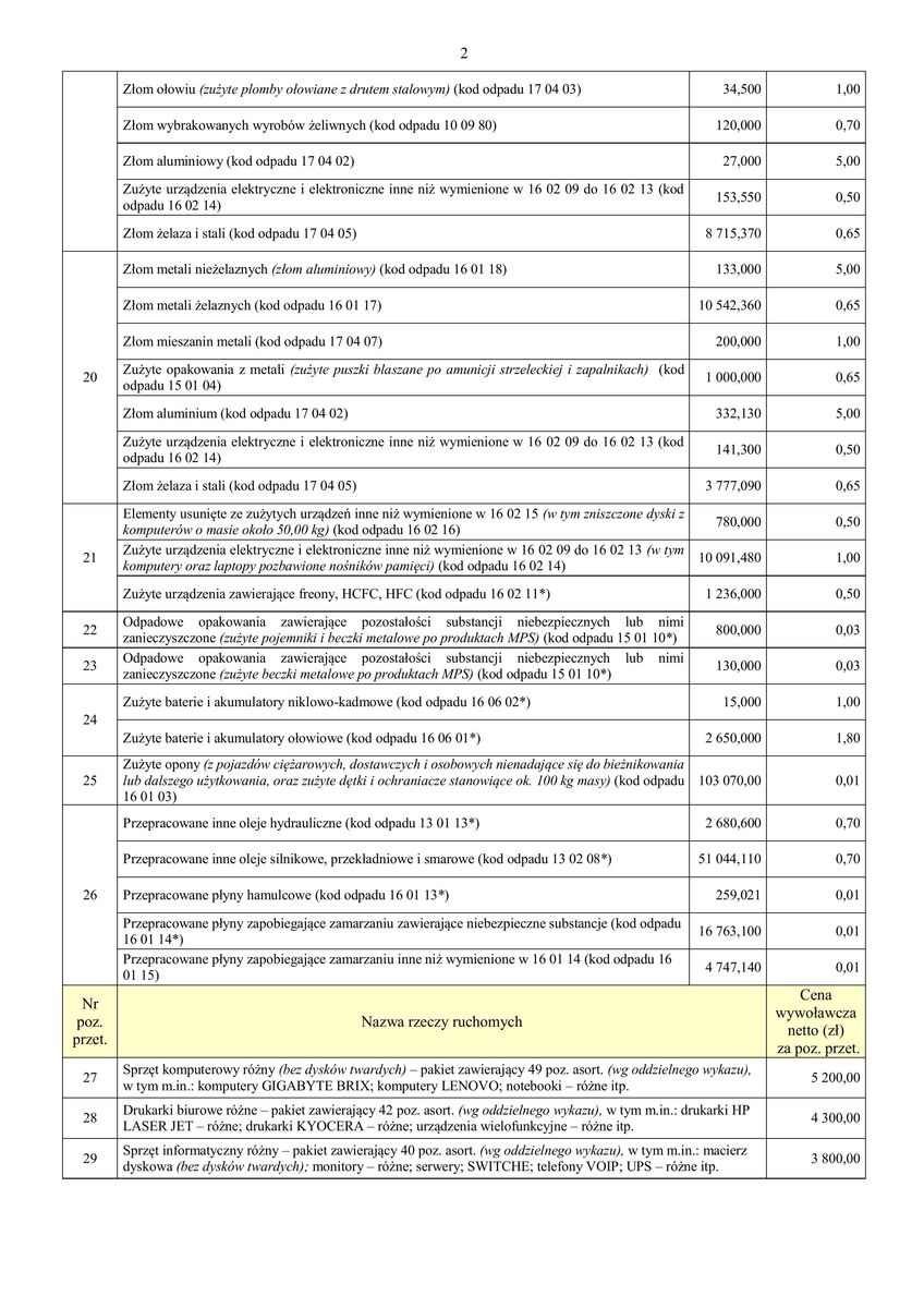 Ogłoszenie o przetargu publicznym pisemnym Nr 1/00/2026 na sprzedaż odpadów